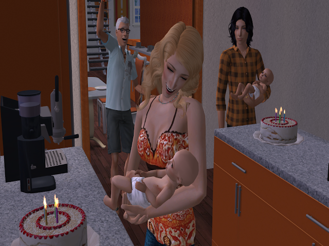 Kyllä sims-häitä on sittne mukavaa järjestää :> Ei mitenkään liian usein tule lähetettyä simejä matkoille, ehkä nuo lomakohteet on sen verran jo koluttu läpi :D Kaksosia näyttää Ziazanin suku suosivan, niin kissoissa kuin ihmisissä. Minun järkeen tuo selitys kävisi ihan hyvin, en ainakana vielä ole keksinyt, kenellä Ziazaneista olisi harmaat silmät :D Varsin tyytyväinen olen kyllä molempien tyttöjen ulkonäköön, onneksi minun kontolleni ei jää perijän päättäminen.. Kiitoksia kommentista! :)